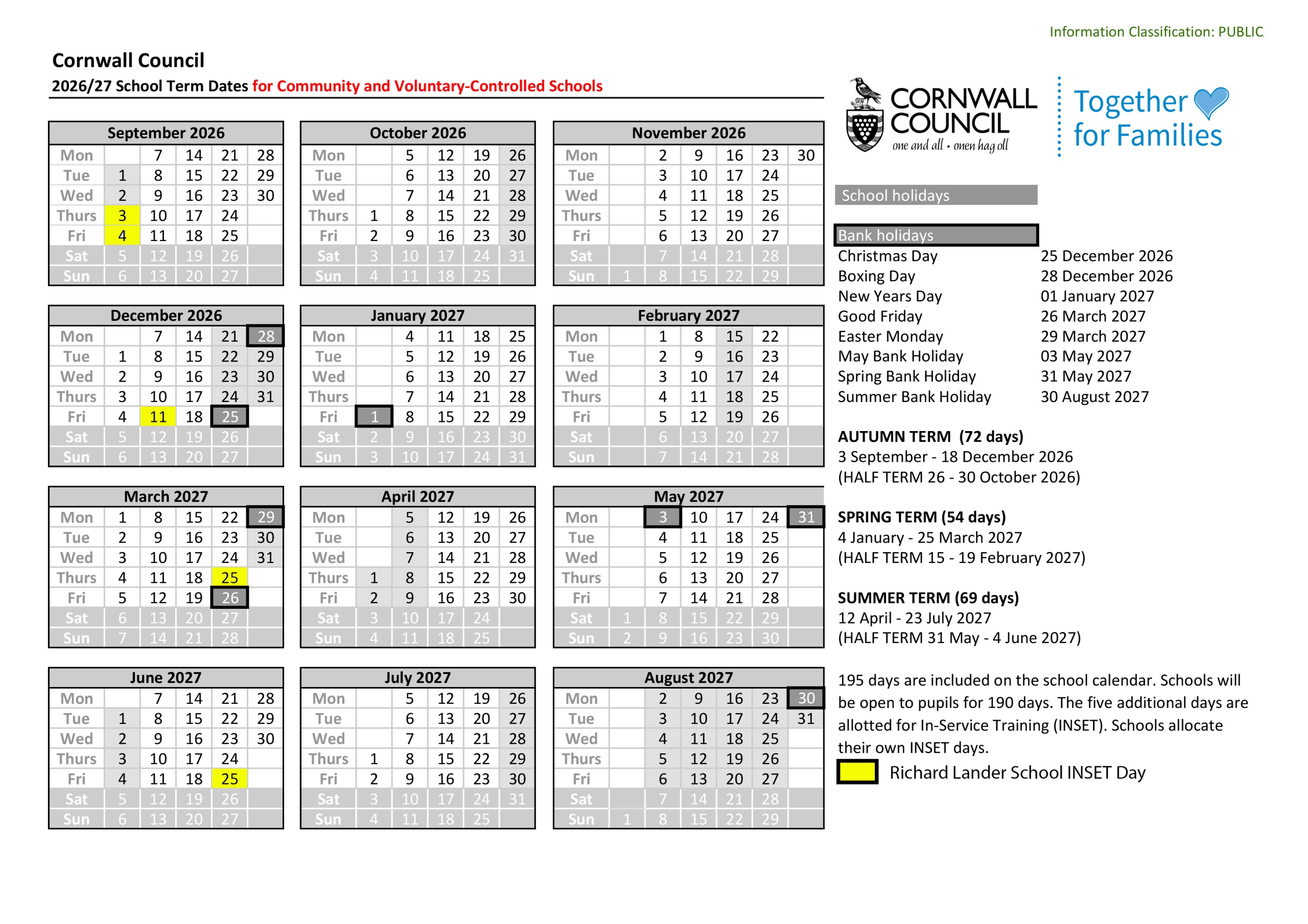 Pupils who are eligible for free travel are able to travel on designated school buses which are provided under contract to the Local Authority. This applies to any child whose home address is more than 3 miles away from Richard Lander School where the school is the closest school to the home address